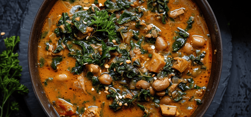 Ghanaian Groundnut Soup (Nkatekwan) with Chicken & Spinach